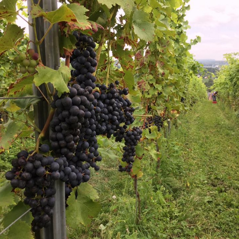 Les premiers raisins vendangés proviennent des vignes plantées avec les variétées "Pinotin" et "Pinot Noir précoce" (et oui, l'information est déjà inclue dans le nom).